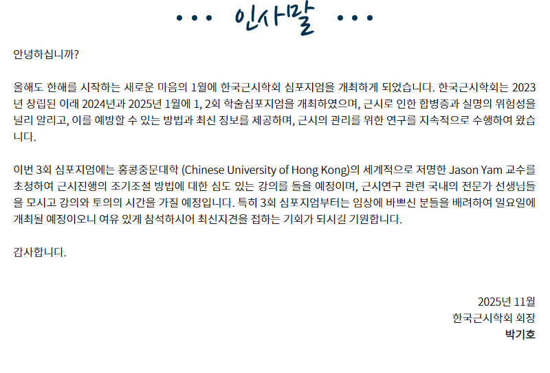 한국근시학회 2026년 제3회 학술심포지엄 (2026년 1월 18일 일요일)