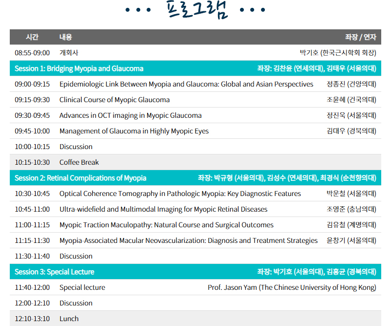 한국근시학회 2026년 제3회 학술심포지엄 2026년 1월 18일 (일요일)